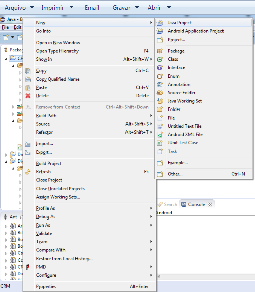 Nota: Sua versão do Eclipse poderá ser diferente que está na documentação. No entanto todos têm a opção de criar projeto e palheta do Ant.